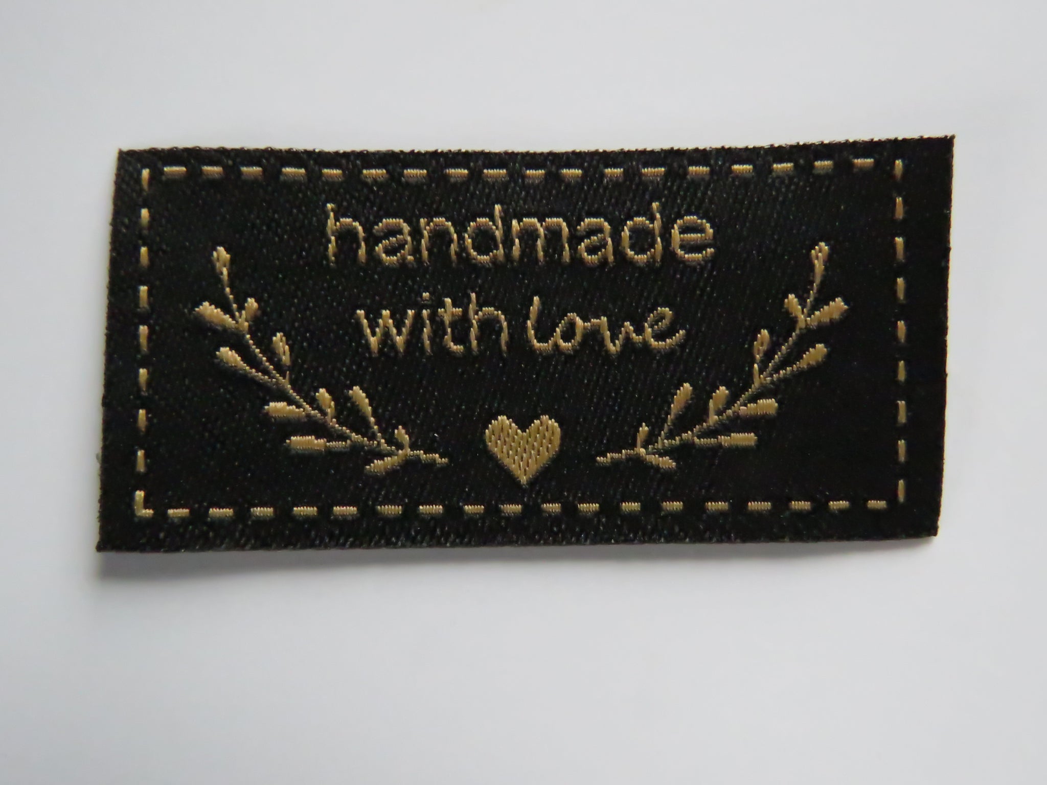 25 Black Handmade with Love labels with heart and branches in gold font 50mm wide x 25mm high