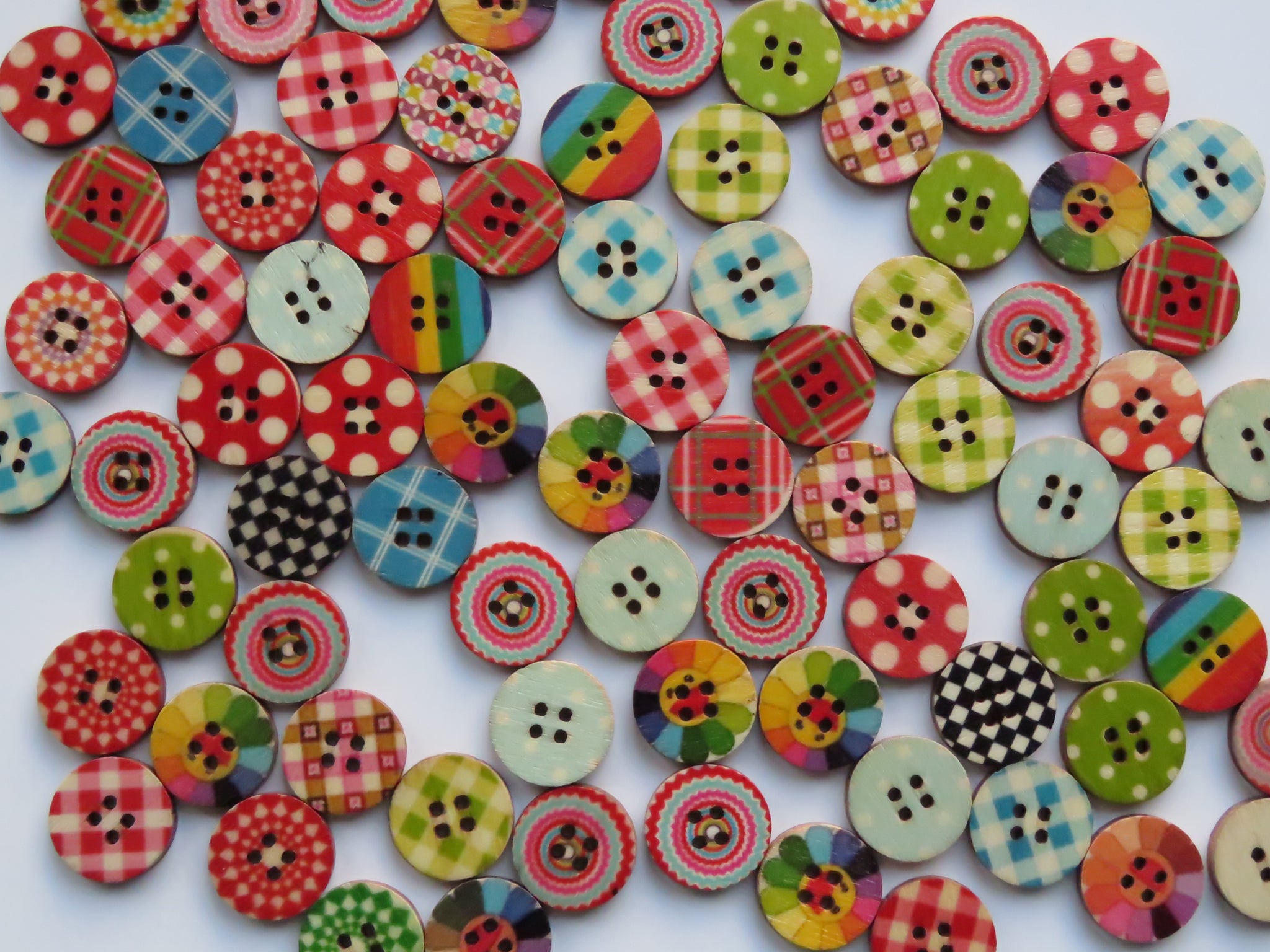 50 Mixed Print Gingham checks and spots 15mm buttons 2 holes